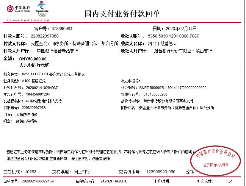 为响应行业协会号召,彰显天圆担当,2月4日至7日,天圆公司组织员工进行了以自发、自愿为原则的捐款活动,在公司决策层的倡议和率先垂范下,全体天圆人一呼百应,奉献爱心。按照协会倡导的不聚集原则,员工们通过电话、微信等方式,联系所在部门和单位,纷纷表达支援武汉的急切心情,将自己的捐款、美好的祝福和必胜的信念通过公司传递给了抗疫一线人员。