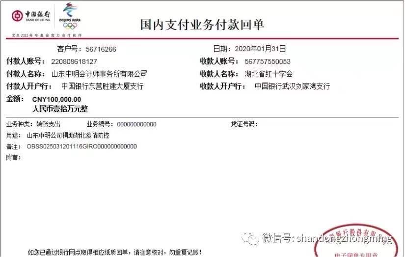 一方有难、八方支援。为助力湖北打赢新型冠状病毒肺炎疫情防控阻击战,1月30日,山东中明(集团)公司党支部发起组织员工向湖北捐款活动。员工们积极响应,进行爱心捐款,截至2020年1月31日,员工捐款和山东中明(集团)公司捐款共计10万元,一并捐给湖北省红十字会,用于抗击新型冠状病毒感染肺炎疫情。付出爱,传递爱,小爱就能汇聚成大爱。