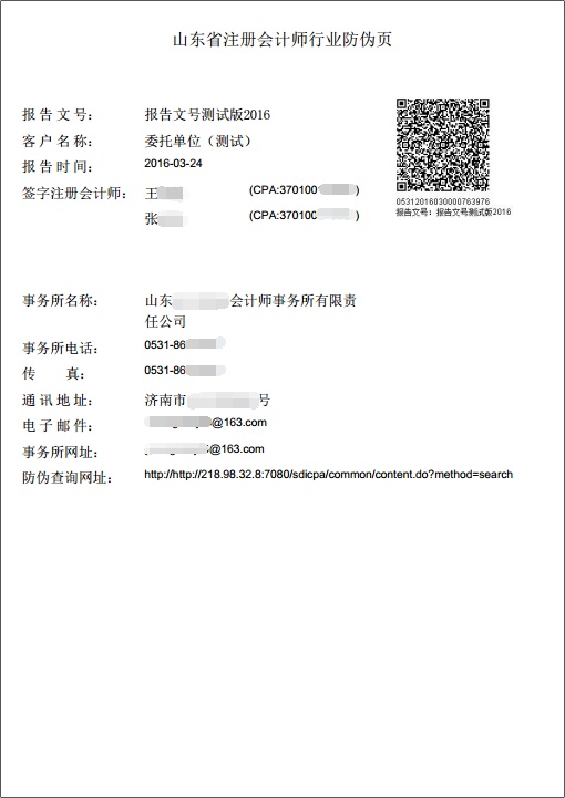 为维护实行业务报告防伪报备制度的真实性、严肃性,保证防伪报备工作的顺利有效开展,省注协、省评协还开设了网上举报信箱和举报投诉电话,接受行业内外和社会各界的投诉举报和监督。举报受理电话: 0531-82919667 电子邮箱:sdcpajg@163.com 防伪查询网址:www.bcdhm.com。防伪报备标识(样本)附后。