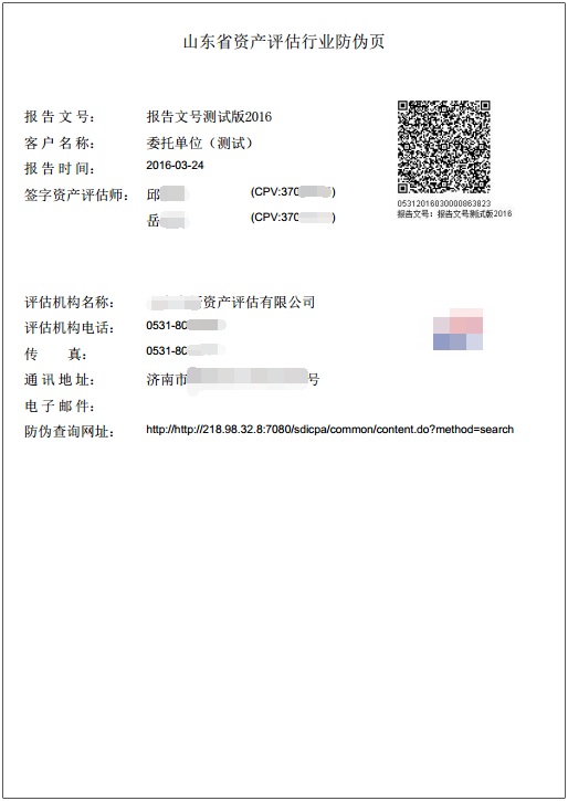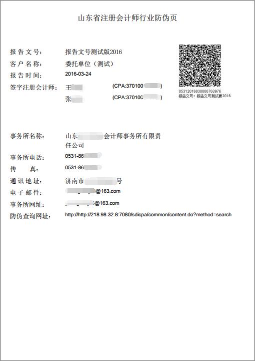 山东注协、山东评协提请贵单位在使用、审核山东省注册会计师、资产评估行业鉴证类业务报告时,认准事务所、评估机构所提供业务报告中必须带有防伪标识,加强对事务所、评估机构和从业人员执业行为的监督。查询注册会计师、资产评估师鉴证类业务报告信息真伪请手机扫描报告二维码或登录协会网站使用防伪码查询。