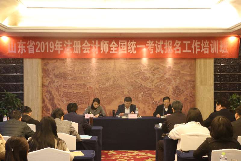 2019年3月20日至23日,山东省2019年注册会计师全国统一考试报名工作培训班在枣庄举办。省注协分管领导及枣庄财政局相关领导出席会议并讲话。来自全省16个考区分管考试工作的考区主任及工作人员、机考公司相关负责人共50余人参加培训。