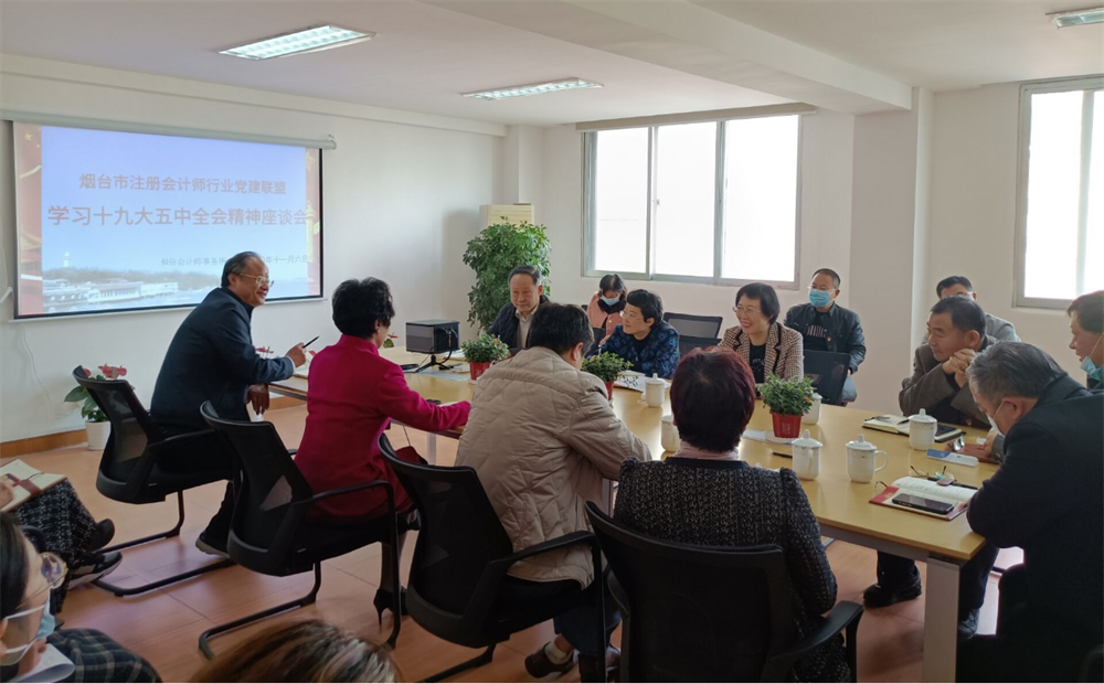 11月6日上午,烟台市注册会计师行业党建联盟学习党的十九届五中全会精神座谈会在和信会计师事务所烟台分所举行,参加会议的人员有市财政局党组成员、副局长、市注册会计师行业党委书记王金钟同志,市注册会计师行业党委副书记、市财政局会计科科长孙丽丽同志,市注册会计师行业党建联盟各党支部书记以及和信会计师事务所烟台分所党员。