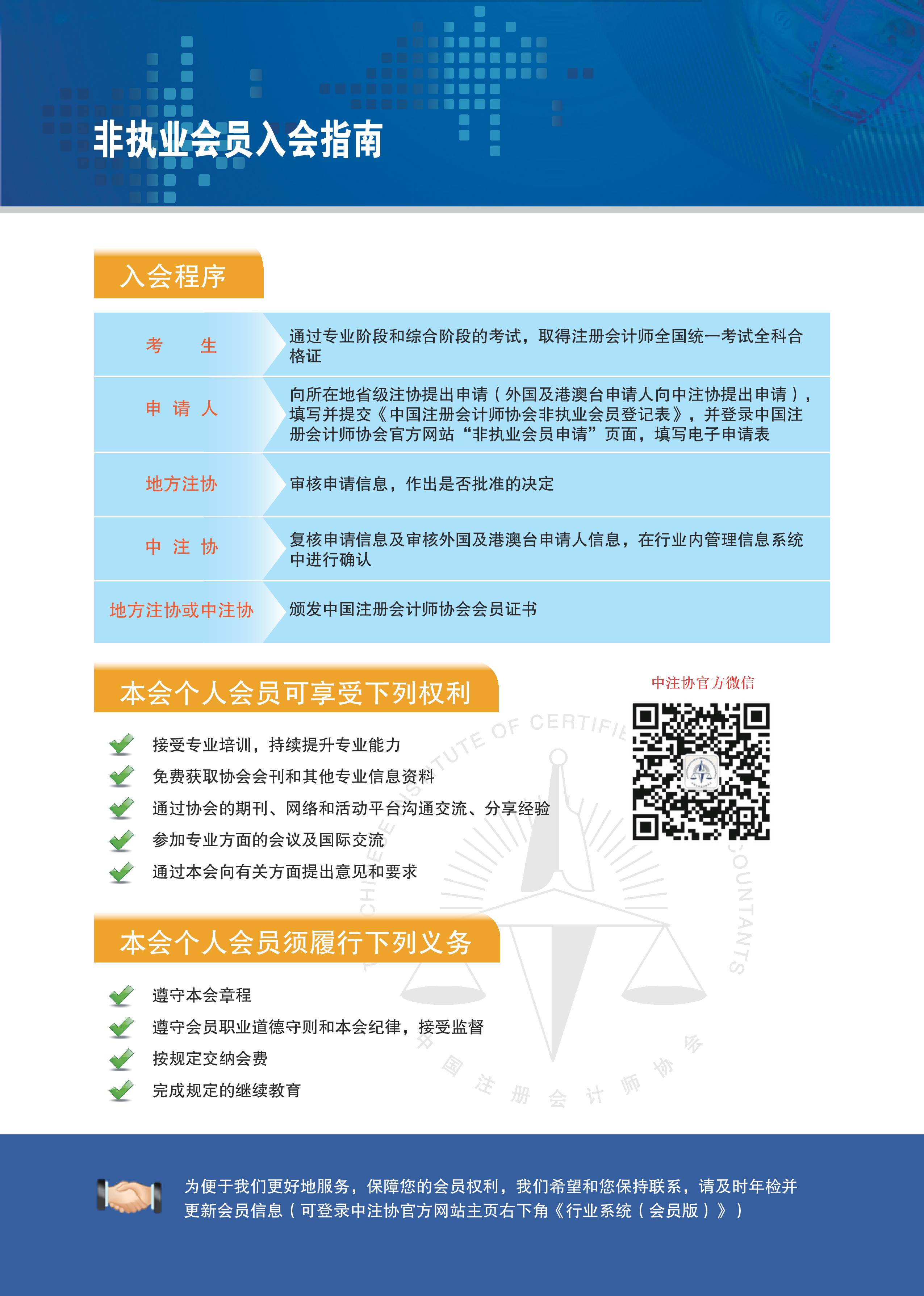 获得2019年全科合格证的考生,可在领取全科合格证的同时,办理入会事宜。考生可登录山东省注册会计师协会官方网站(//www.bcdhm.com)“注会管理→规章制度”版块下载查阅注册须知。