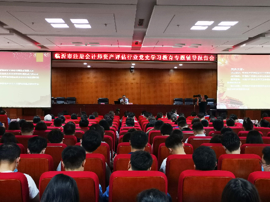 为进一步推动党史学习教育走深走实,5月28日上午,临沂市注册会计师行业党委举办市注册会计师资产评估行业党史学习教育专题辅导报告会,邀请临沂市委党校刘延宏教授作了《中国共产党的百年辉煌》专题辅导报告,市财政局会计科科长臧文平主持,市注册会计师行业党组织党员及群众代表300余人参加。
