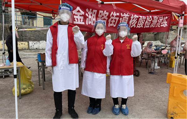 立信会计师事务所(特殊普通合伙)青岛分所立即组织在所员工进行核酸检测,并组织青年突击队参加金湖路街道志愿服务活动,积极投入到此次核酸检测工作中。立信青年们穿上防护服、戴上隔离面罩,一声声反复的提醒、一次次耐心地解答,整整一个上午不间断的工作没有一句抱怨、一丝退却,用实际行动诠释着立信青年的使命与担当。