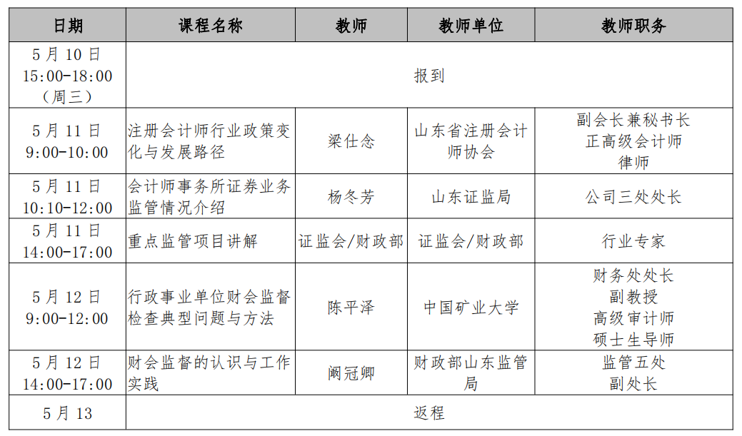 财会监督作为党和国家监督体系的重要组成部分,在推进全面从严治党、维护中央政令畅通、规范财经秩序、促进经济社会健康发展等方面发挥了重要作用。为进一步加强财会监督工作,更好发挥财会监督职能作用,由注协牵头,财政、证监等有关部门支持,采取以班代会的形式,传达监管精神,贯彻落实两办意见。现根据山东省注册会计师协会《2023年度山东省注册会计师培训计划》的安排,决定委托中国财政经济出版社培训中心举办山东省注册会计师行业“财会监督”专题研讨班,现将有关事宜通知如下: