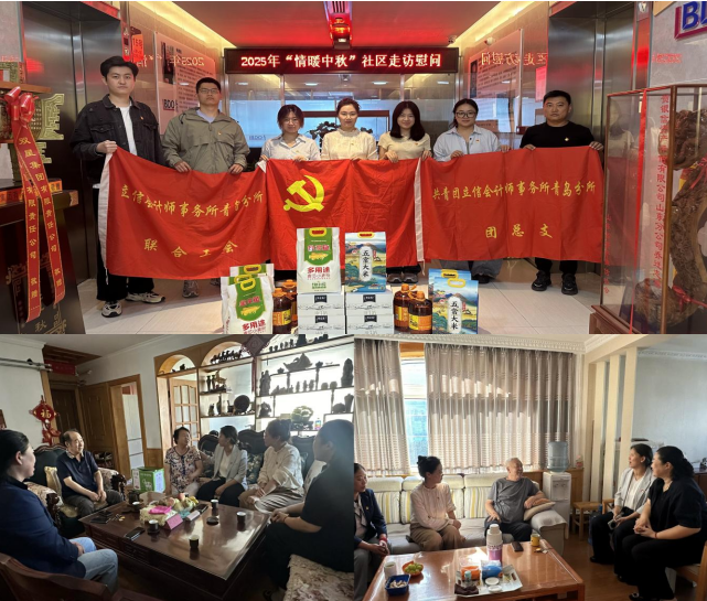 秋高气爽,丹桂飘香。在中华民族传统佳节中秋节来临之际,为践行社会责任、传递组织温暖,2025年9月25日,立信会计师事务所(特殊普通合伙)青岛分所(以下简称“立信青岛分所”)党总支联合团总支组织党员及青年团员代表前往瑞都社区,开展以“情暖中秋”为主题的中秋节走访慰问活动。